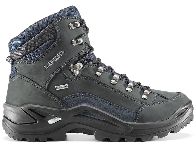 Herrenwanderstiefel von Lowa; Obermaterial: Velour- und Nubukleder; Innenmaterial: Leder- und Textilfutter; herausnehmbares Fußbett; verstellbar durch Schnürung; Knöchelhoch; gepolsterte Zunge; Wasserdicht und Atmungsaktiv durch Gore-Tex; Sohle: Vibram Evo-Laufsohle; Farbe: Dunkelgrau