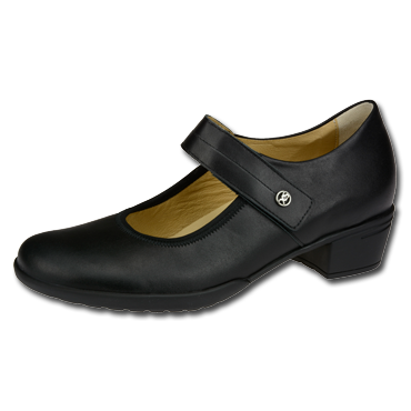 Obermaterial: Nappaleder; Innenmaterial: Lederfutter; herausnehmbares Leichtkorkfußbett; verstellbar durch ein Klettverschluss; Sohle: Naturkatschuk mit Luftkammer; mit Absatz; Absatzhöhe: ca. 2,5 cm; XS-Laufsohle für leichteres Abrollen; Machart: AGO (Gezwickt); Weite G; Farbe: Schwarz