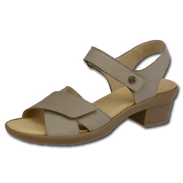 Obermaterial: Nubukleder; Innenmaterial: Leder (Chromfrei); herausnehmbarem Leichtkorkfußbett; verstellbar durch zwei Klettverschlüsse; mit Fersenriemen; mit Absatz; Absatzhöhe: 2,5 cm; Sohle: Mit Naturkatschuk und Luftpolster in der Sohle; XS- Laufsohle für leichteres Abrollen; Machart: Handgezwickt; Weite G; Farbe: Eiche