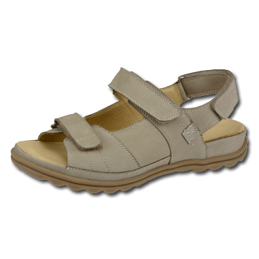 Obermaterial: Nubukleder; Innematerial: Lederfutter; herausnehmbares Leichtkorkußbett; verstellbar durch zwei Klettverschlüsse und einem Fersenriemen mit Klettverschluss; Sohle: Naturkatschuk mit Luftkammern; mit Patentiertem XS- Sohle zum leichterem Abrollen; Weite G; Farbe: Eiche/Kaschmir
