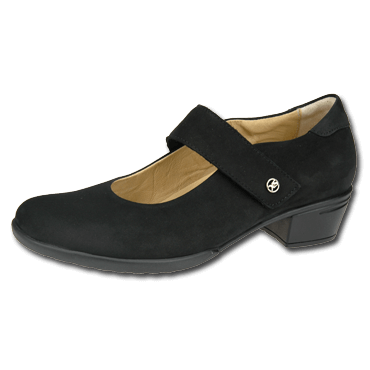 Obermaterial: Nubukleder; Innenmaterial: Lederfutter; herausnehmbares Leichtkorkfußbett; verstellbar durch ein Klettverschluss; Sohle: Naturkatschuk mit Luftkammer; mit Absatz; Absatzhöhe: ca. 2,5 cm; XS-Laufsohle für leichteres Abrollen; Machart: AGO (Gezwickt); Weite G; Farbe: Schwarz