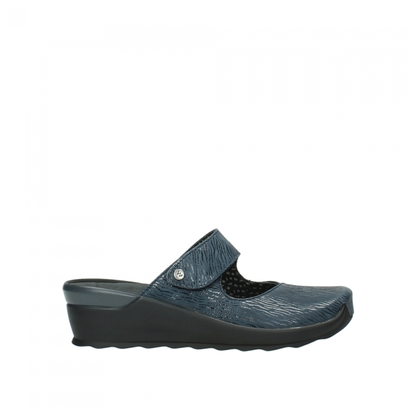 Obermaterial: Glattleder mit Musterung; Innenmaterial: Lederfutter; herausnehmbares; anatomisch geformtes Fußbett; verstellbar durch einen Reimen mit Klettverschluss; sehr leichtev EVA- Sohle; Dunkle Sohle; Gutes Abrollen des Fußes; Absatzhöhe ca. 4 cm; Farbe: Denim Canals (Jeans Blau)