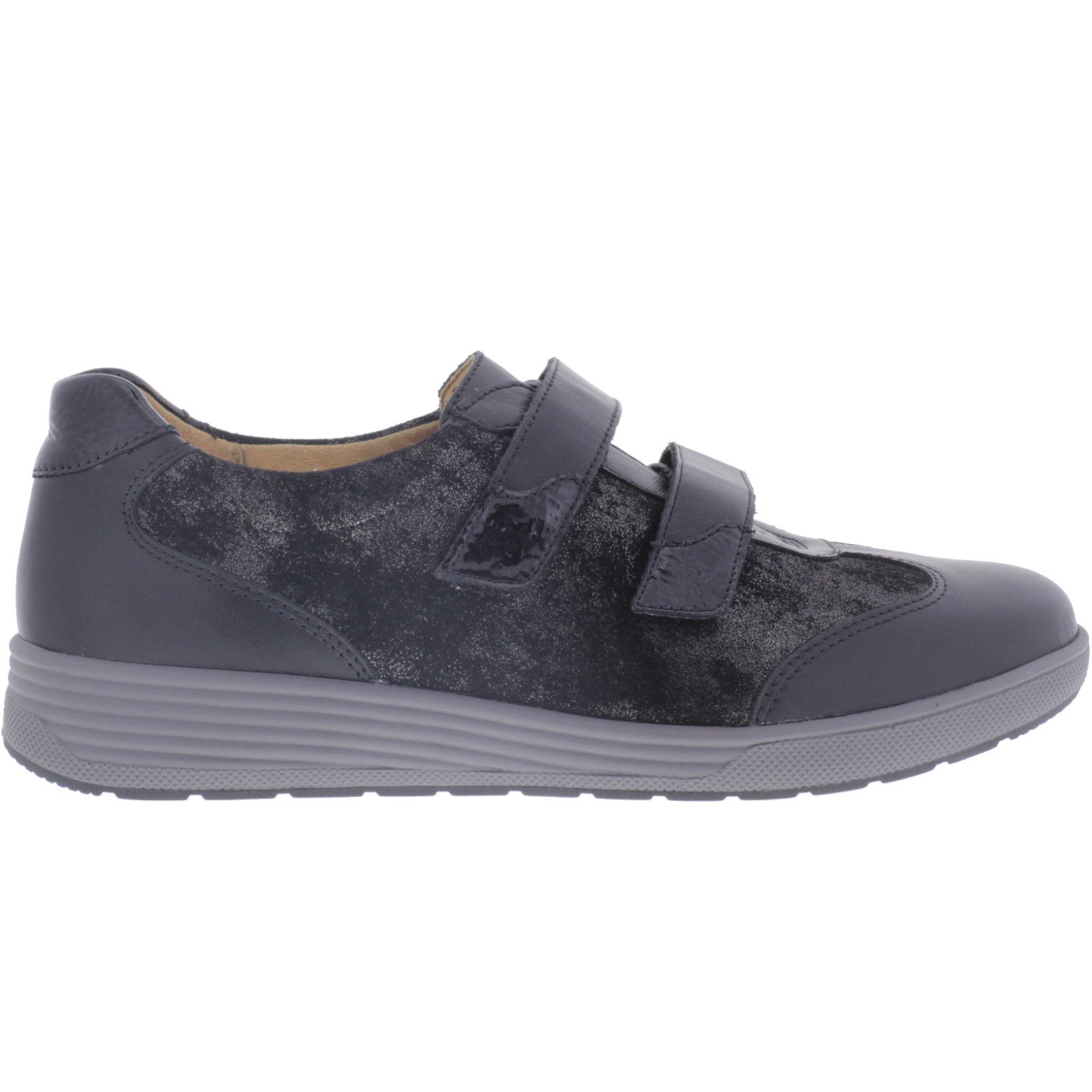 Obermaterial: Glattleder und Nubukleder; Innenmaterial: Lederfutter, herausnehmbares anatomisch geformtes Fußbett, somit für Einlagen geeignet; verstellbar durch zwei Klettverschlüssen; stoßdämpfende 4-Punkt-Sohle sorgt für ein natürliches Barfuß ähnliche Gehgefühl; Dunkle Sohle; rutschhemmende Gripsohle; geeignet für empfindliche Fußfüße (Weiches Innenfutter, wenig Innennähte und mit viel Platz für die Zehen); für Diabetiker gut geeignet; Weite K; Farbe: navy/ Ocean (blau);