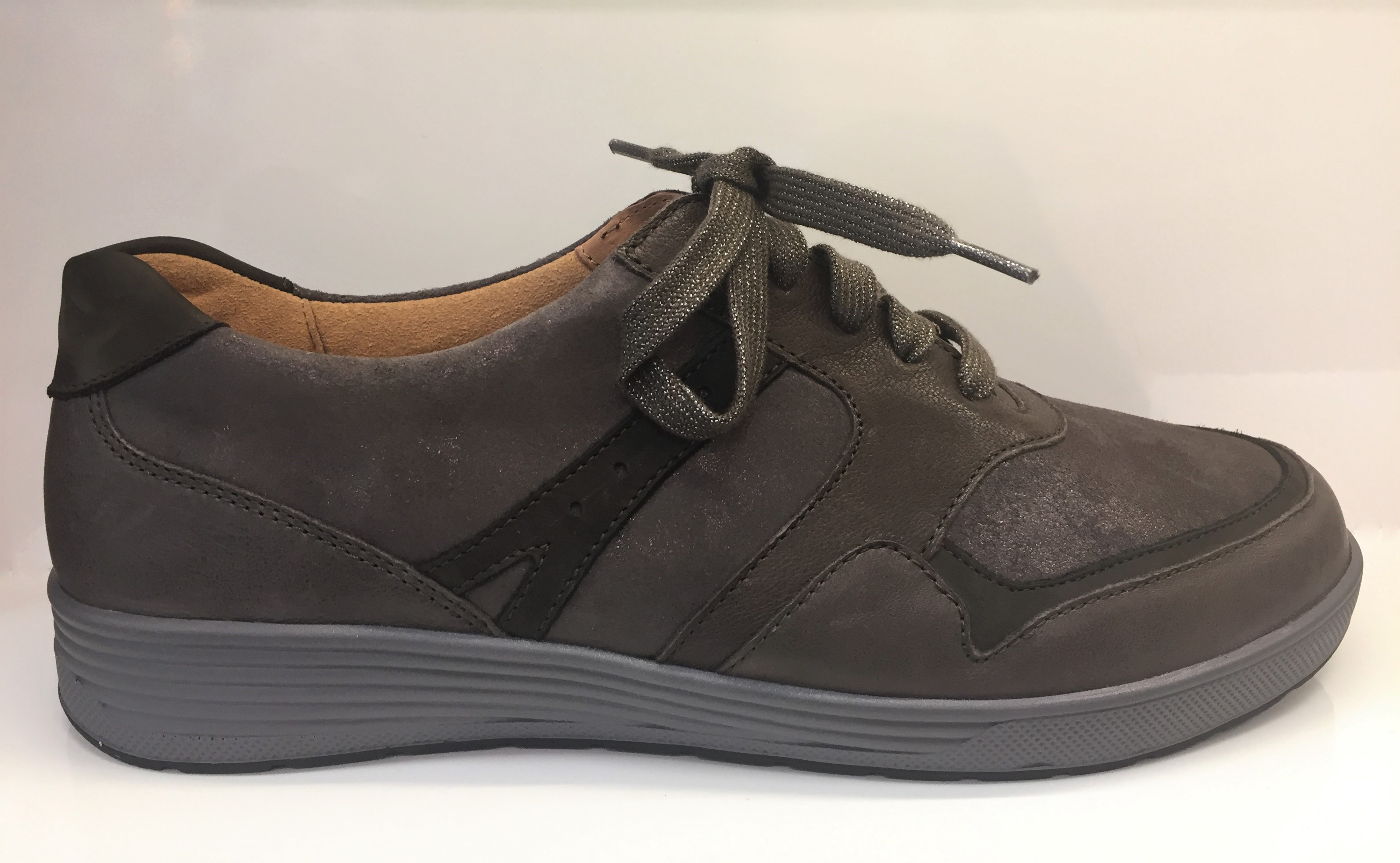 Obermaterial: Softnubukleder; Innenmaterial: Lederfutter; herausnehmbares anatomisch geformtes Fußbett; verstellbar durch Schnürung; stoßdämpfende 4-Punkt-Sohle sorgt für ein natürliches Barfuß ähnliche Gehgefühl; Dunkle Sohle; rutschhemmende Gripsohle; geeignet für empfindliche Fußfüße (Weiches Innenfutter, wenig Innennähte und mit viel Platz für die Zehen); für Diabetiker gut geeignet; Farbe Braun/glänzend