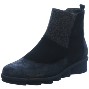 Obermaterial: Veloursleder in Glitter-Optik mit Nubukleder und Textildetails; Innenmaterial: warmes Textilfutter; herausnehmbares Fußbett aus Filz; Schafthöhe: 14cm; extravagante Gummilaufsohle mit Luftpolster und Keilabsatz – Höhe ca. 3 cm, Farbe: Schwarz