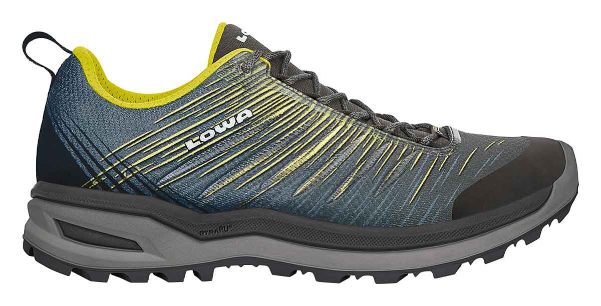 Obermaterial: Textil- und Synthetikmaterial; Innenmaterial: Textilfutter; herausnehmbarem Fußbett; atmungsaktiv und wasserabweisend durch Gore-Tex; Sohle: Lowa Trail Trac; sehr gute Haftung auf unterschiedlichsten Untergründen; Verstellbar durch Schnürung; Weite: für normale Füße; Farbe: Stahlblau