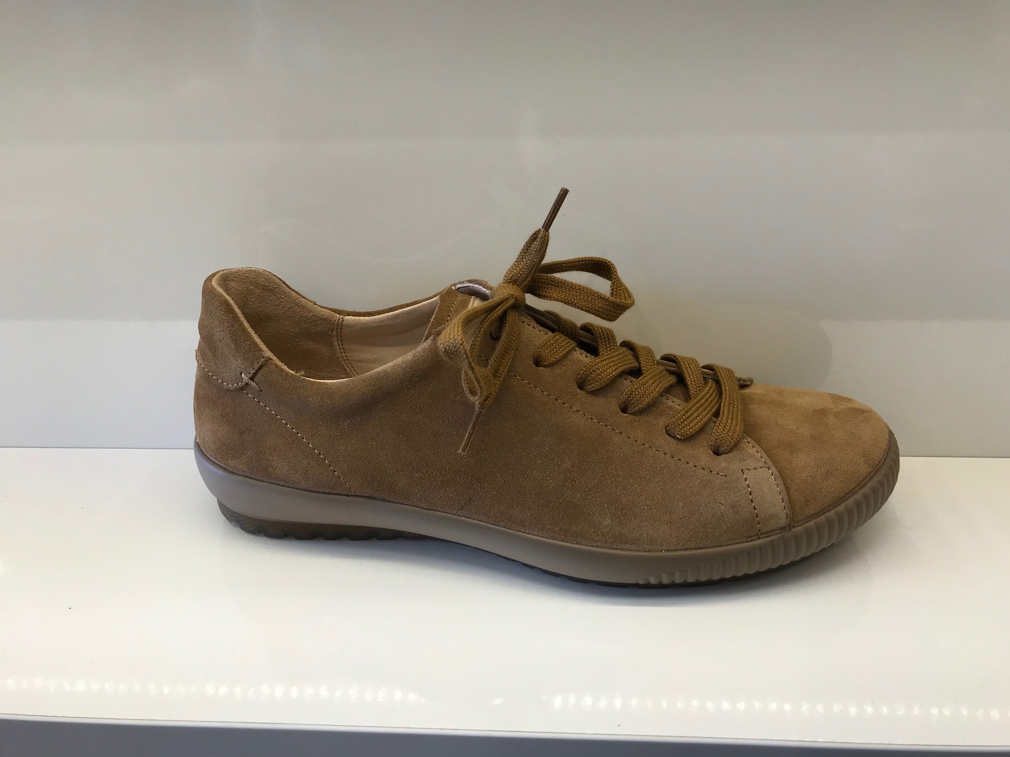 Damenhalbschuh / Obermaterial: Velourleder / Innenmaterial: Textilfutter / Sohle: dune-TPU / herausnehmbares Fußbett / verstellbar durch Schnürung / Schuh wurde aus recycletem Plastik hergestellt und die Fußsohlen sind naürlich gegerbt worden / Weite G / Farbe Whiskey (Braun)