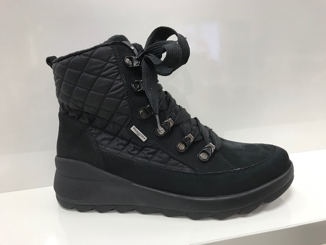 Damenstiefel, Obermaterial: Nubuk leder, Innenmaterial: gefüttert, Sohle: Profilsohle, heruasnehmbares Fußbett, Verstellbar durch Schnürung, Reissverschluss, mit Waldläufer Tex, Weite H, Farbe Schwarz