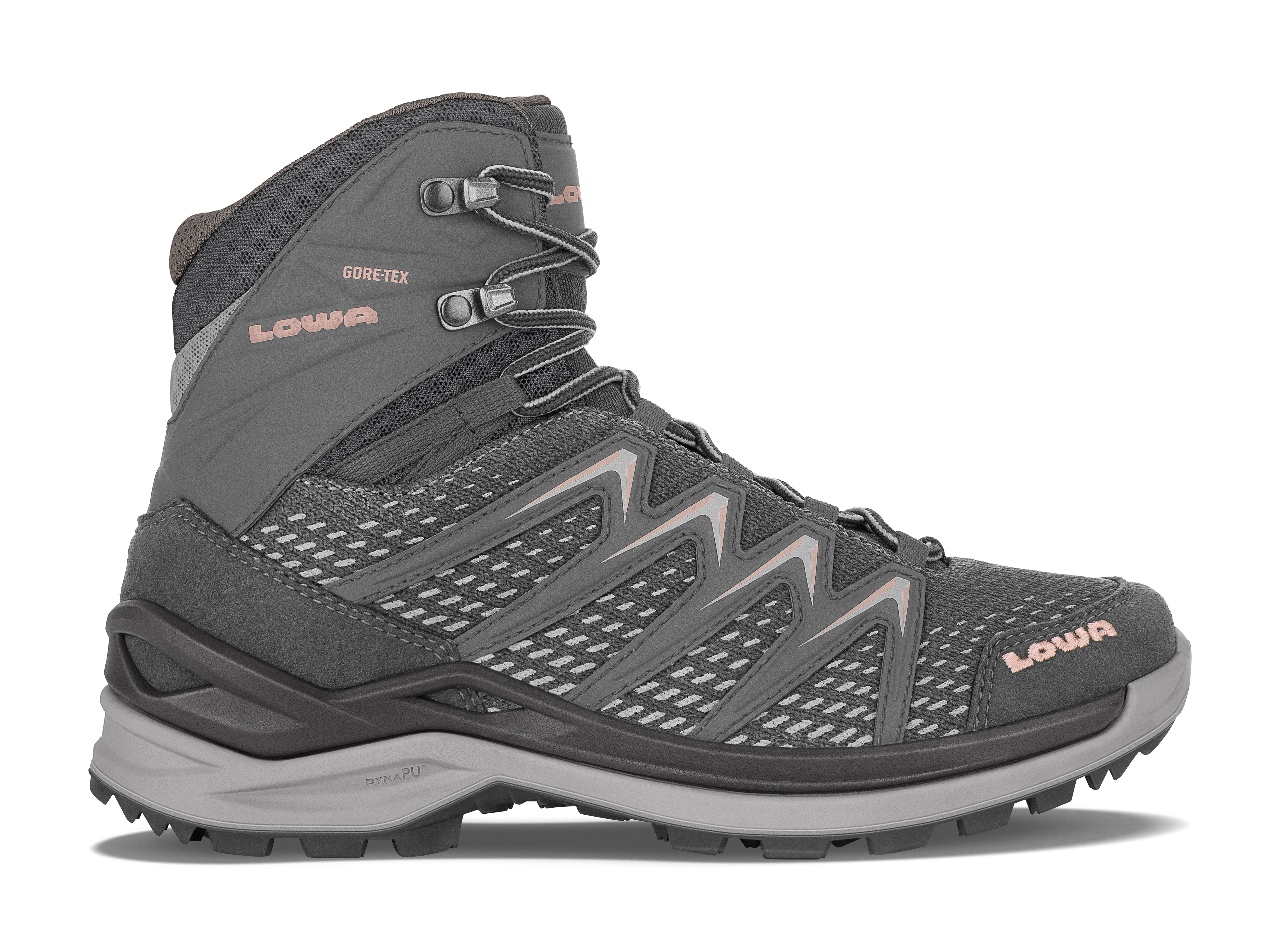 Damenwanderstiefel von Lowa; Obermaterial: Synthetik und Textilmaterial; Innenmaterial: Textilfutter; wasserdicht und atmungsaktiv durch Gore-Tex; herausnehmbares Fußbett; verstellbar durch Schnürung; Knöchelhoch; Sohle: Multi Trac (rutschhemmende Gummisohle unterschiedliche Untergründe) Farbe: Anthrazit/Rosé