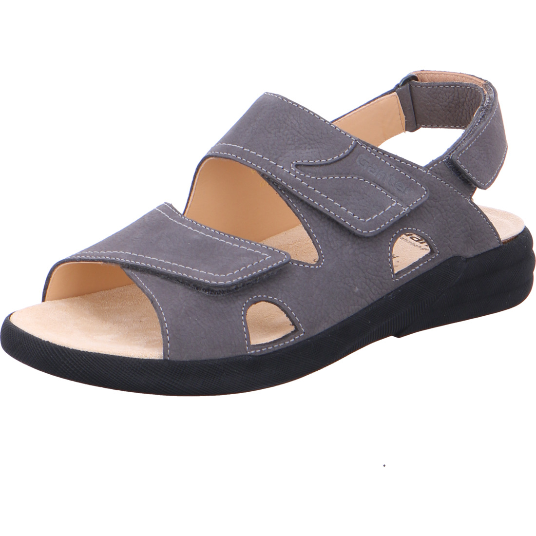 Herrensandale von Ganter; Obermaterial: Nubukleder; Innenmaterial: Lederfutter; herausnehmbares Variofußbett; verstellbar durch zwei Klettverschlüsse und Fersenriemen mit einem Klettverschluss; stoßdämpfende 4-Punkt Sohle; leicht profilierte rutschhemmende Sohle; Weite H; Farbe: Asphalt
