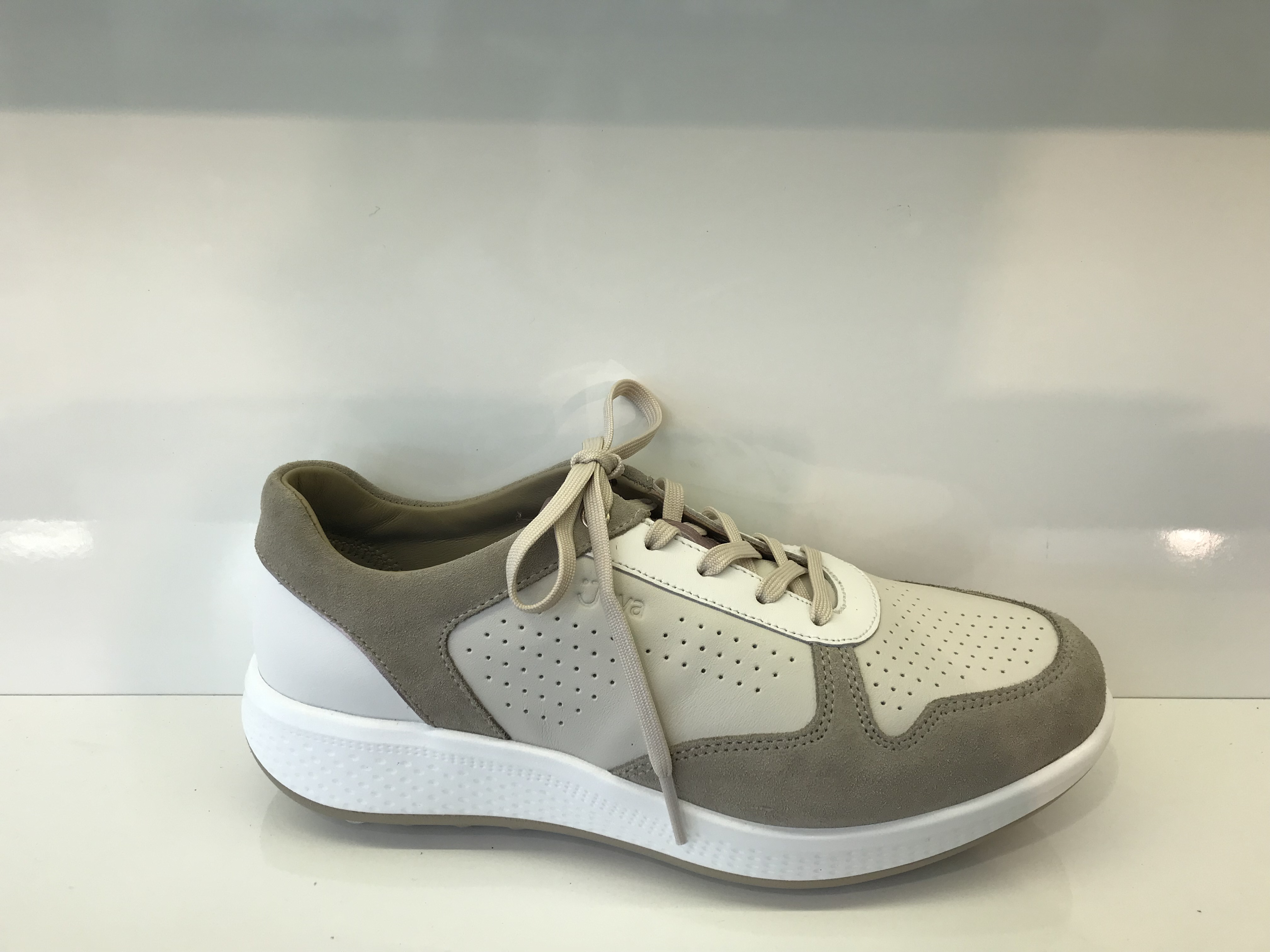 Damenhalbschuhe von Joya; Obermaterial: Premium-Glattleder und Velourleder; Innenmaterial: Leder- und Textilfutter; herausnehmbares Ortholite Nuvola-Fußbett (Die antibakterielle und atmungsaktive Innensohle kann bei 40°C in der Maschine gewaschen werden, behält nach dem Waschen alle seine Eigenschaften); verstellbar durch Schnürung; Sohle: Emotion (Sehr weich und stoßdämpfend); Unterstützt Rücken und Gelenke; stabiler Stand; Weite: H; Farbe: Beige/Weiß