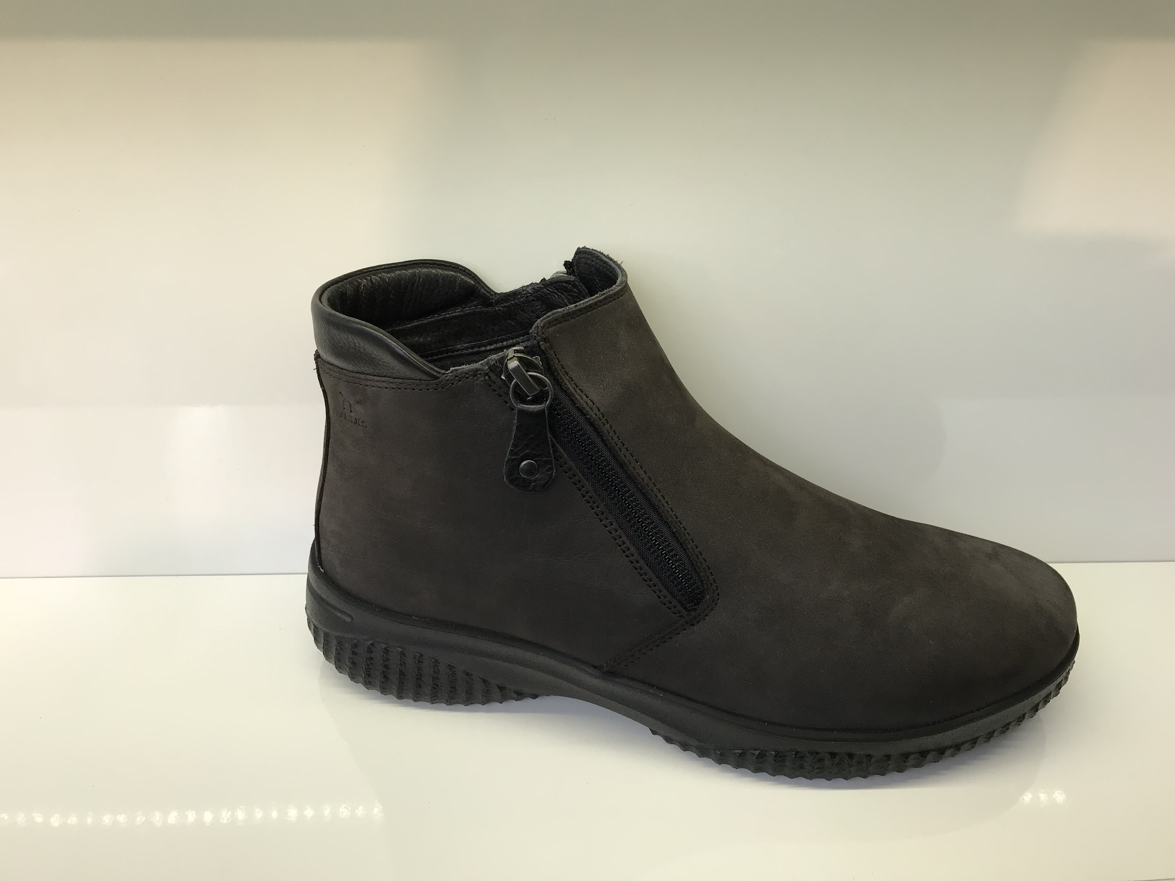 Damenstiefelette von Hartjes; Obermaterial: Hochwertiges Nubukleder; Innenmaterial: Lodenfutter (Warmfutter); Herausnehmbares Leichtkorkfußbett; Verstellbar durch zwei Reißverschlüsse auf der Innen- und Aussenseite; Knöchelhoch; Sohle: PU/TPU-Sohle; Machart: Gestrobelt; Sehr Leicht; Weite G; Farbe: Smoke-Schwarz