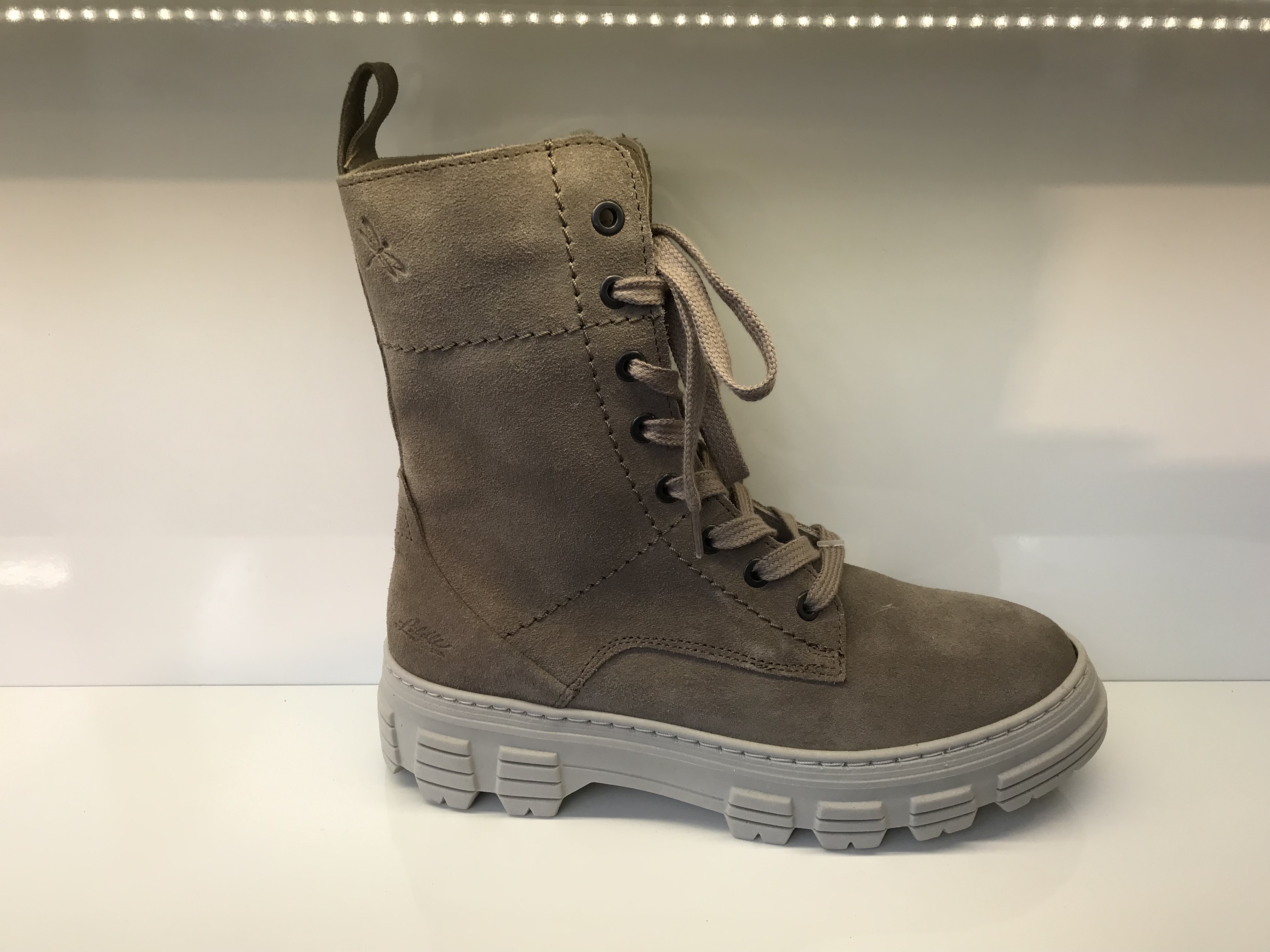 Damenstiefel von Libelle; Obermaterial: Velourleder; Innenmaterial: Warmfutter aus 50% recyelten Materialien; Herausnehmbares Fußbett; Verstellbar durch Schnürung und einem zusätzlichen Reißverschluss auf der Innenseite; Sehr leicht; Helle Sohle; mit Flexzone an der Sohle; Farbe: Taupe