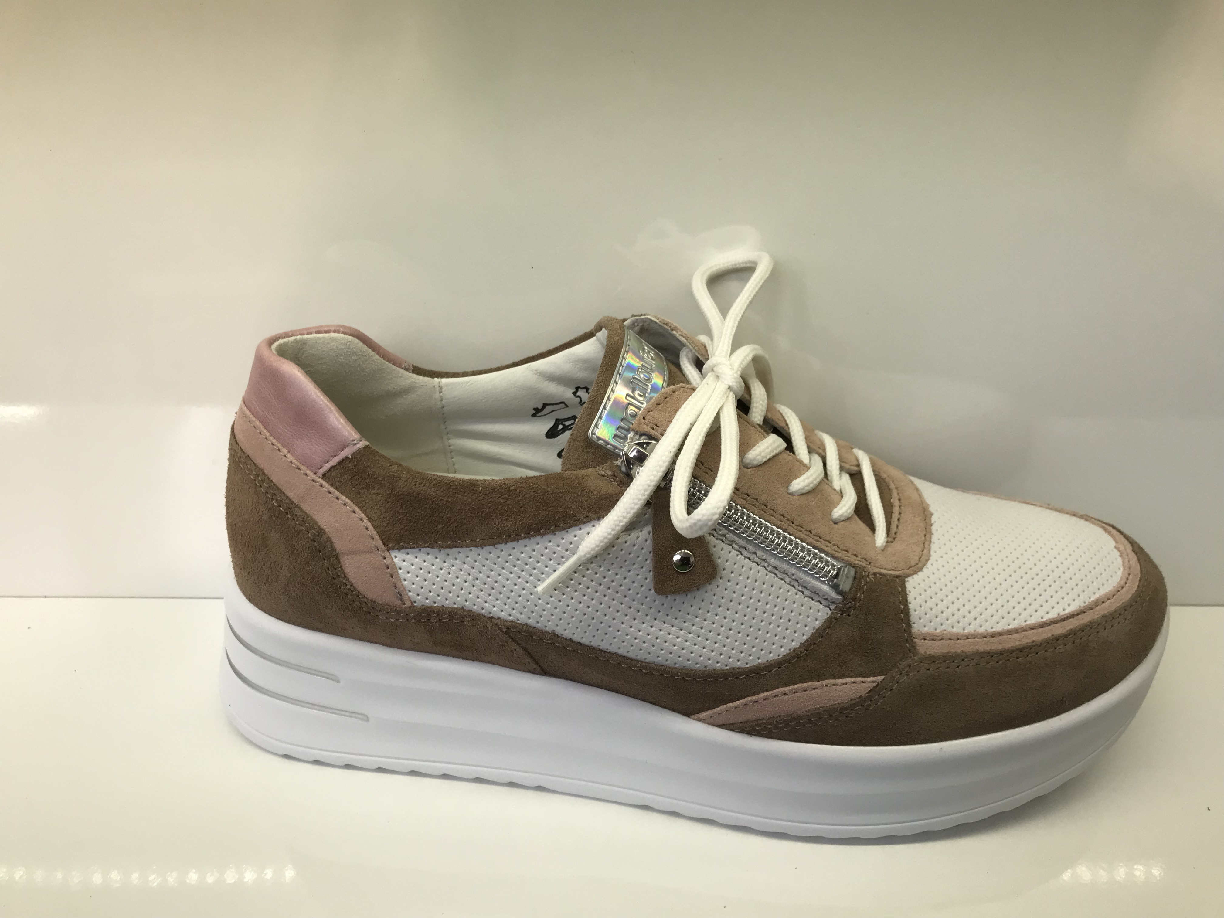 Damenhalbschuhe von Waldläufer; Obermaterial: Velourleder und gelochtes Glattleder; Innenmaterial: Lederfutter; herausnehmbares Fußbett; verstellbar durch Schnürung und einen Reißverschluss; Weite H; Platausohle; weiße Sohle; Farbe: Nougat/Candy/Skin/