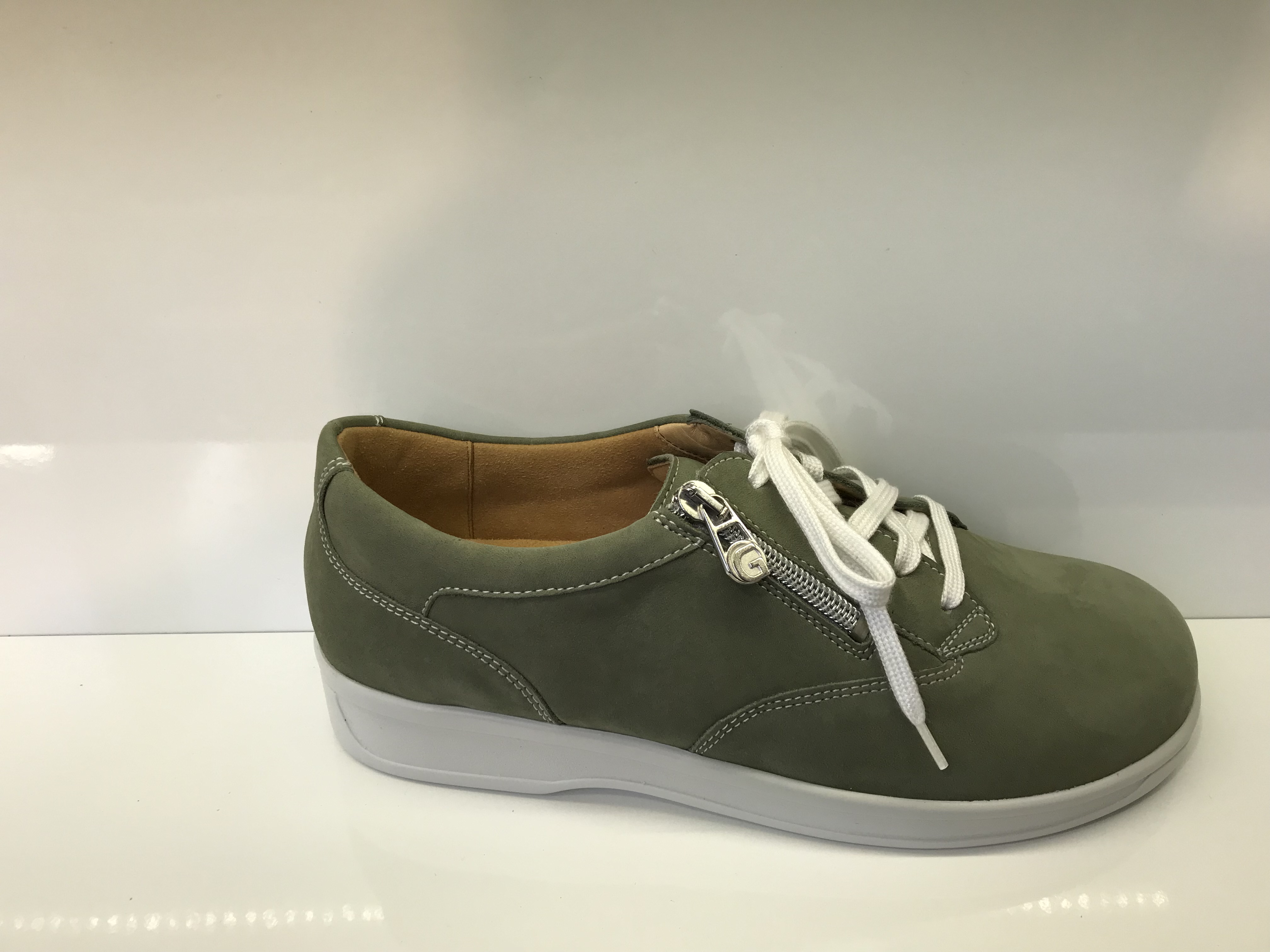 Damenhalbschuhe von Ganter; Obermaterial: Softnubukleder; Innenmaterial: weiches Lederfutter (Sensitivfutter); herausnehmbares Leichtkorkfußbett; verstellbar durch Schnürung; stoßdämpfende 4-Punkt-Sohle sorgt für ein natürliches Barfuß ähnliche Gehgefühl; rutschhemmende Sohle; geeignet für empfindliche Fußfüße (wenig Innennähte und mit viel Platz für die Zehen); für Diabetiker gut geeignet; Weite K; Helle Sohle; Farbe: Salbei