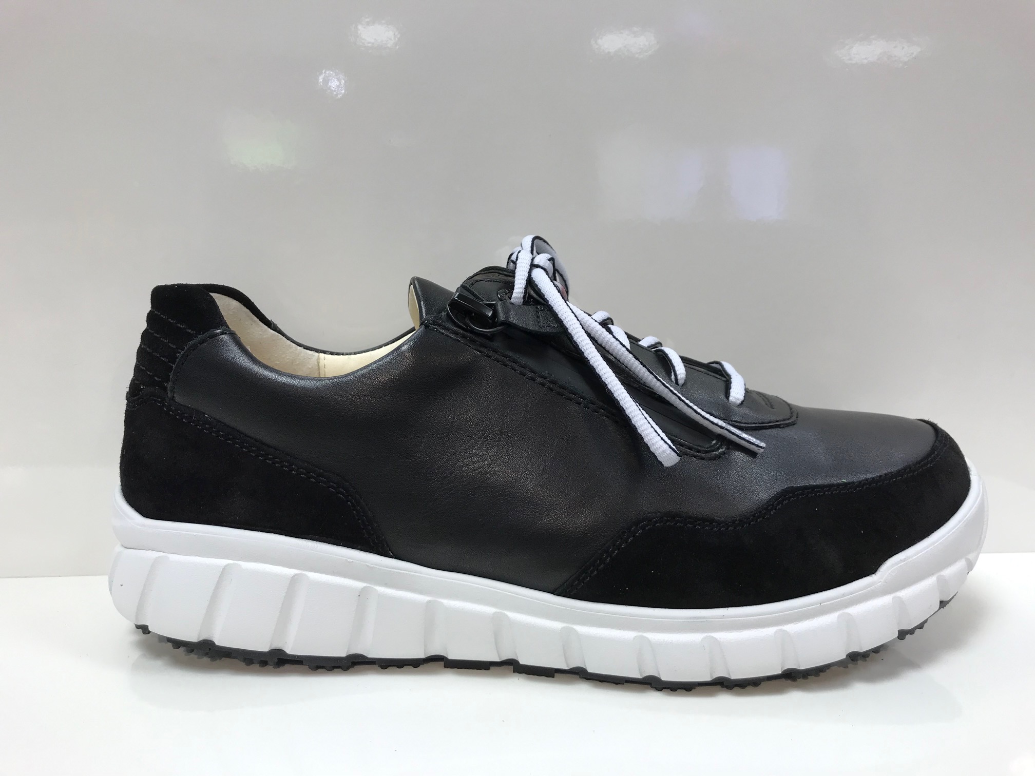Damenhalbschuh/für Einlagen geeignet/Herausnehmbares Fußbett/Hoher Tragekomfort/Weite: H/erlaubt flüssiges Durchrollen von der Ferse bis zu den Zehen/Griffige Sohle gibt auch unter schwierigen Bedingungen einen guten halt/Schnürung sowie zusätzlicher Reißverschluss für leichtes An- und Ausziehen/Calf-Leder/Farbe: Schwarz