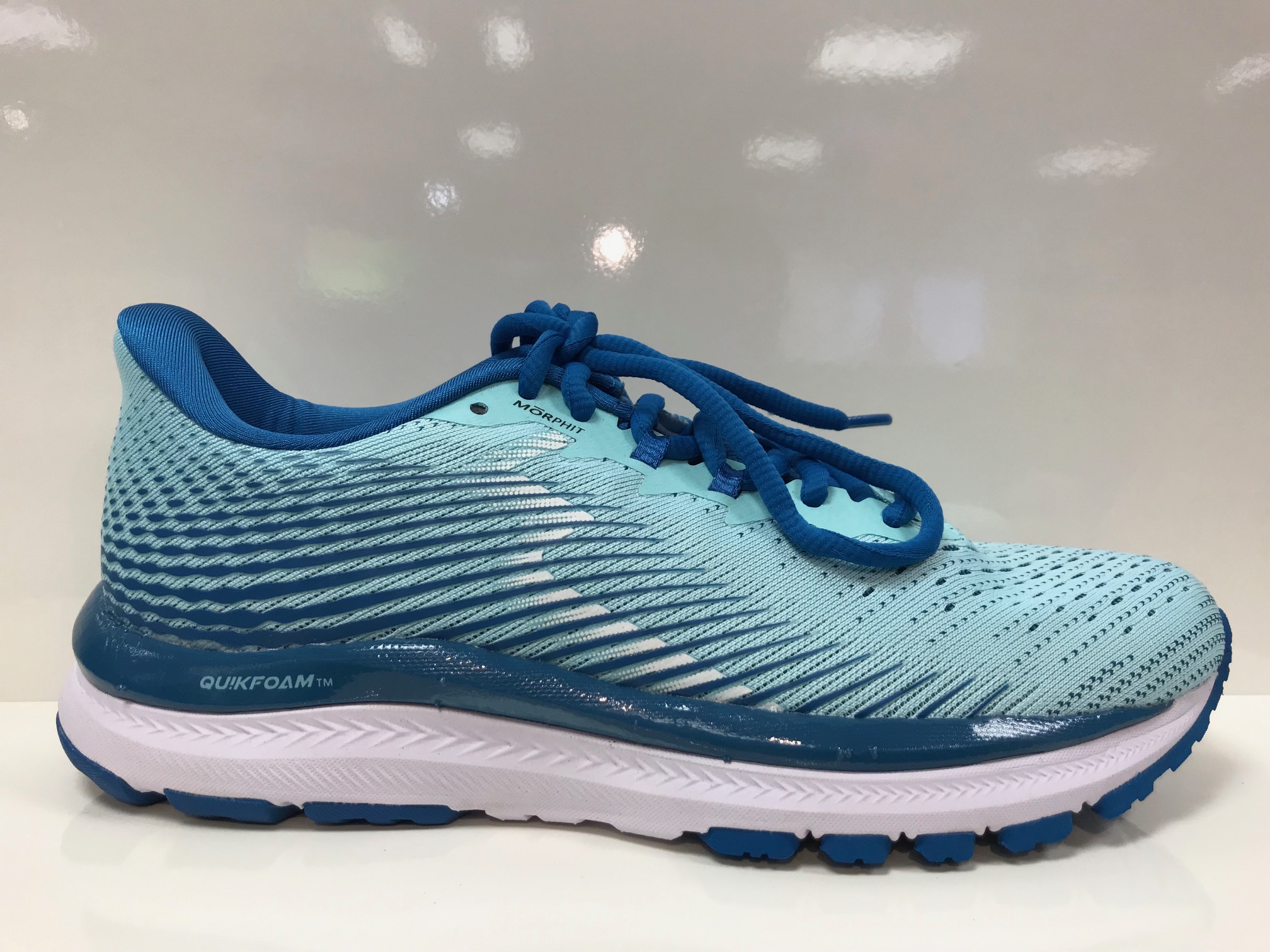 Damensportschuh/Herausnehmbares Fußbett/für Einlagen geeignet/Obermaterial: atmungsaktives, technisches Mesh/verfügt über eine volle Bodenkontakt-Plattform/Ortholite-Einlegesohle/Führung und Stabilität von der Ferse in den Mittelfuß/eignet sich hervorragend für viele Laufstile und verschiedene Geschwindigkeiten/Hoher Tragekomfort/dämpft die Schritte/verschlankte Fersenkappe/Schnürung/ Farbe: Blue Tint/Mykonos Blue (Türkis und Dunkelblau)