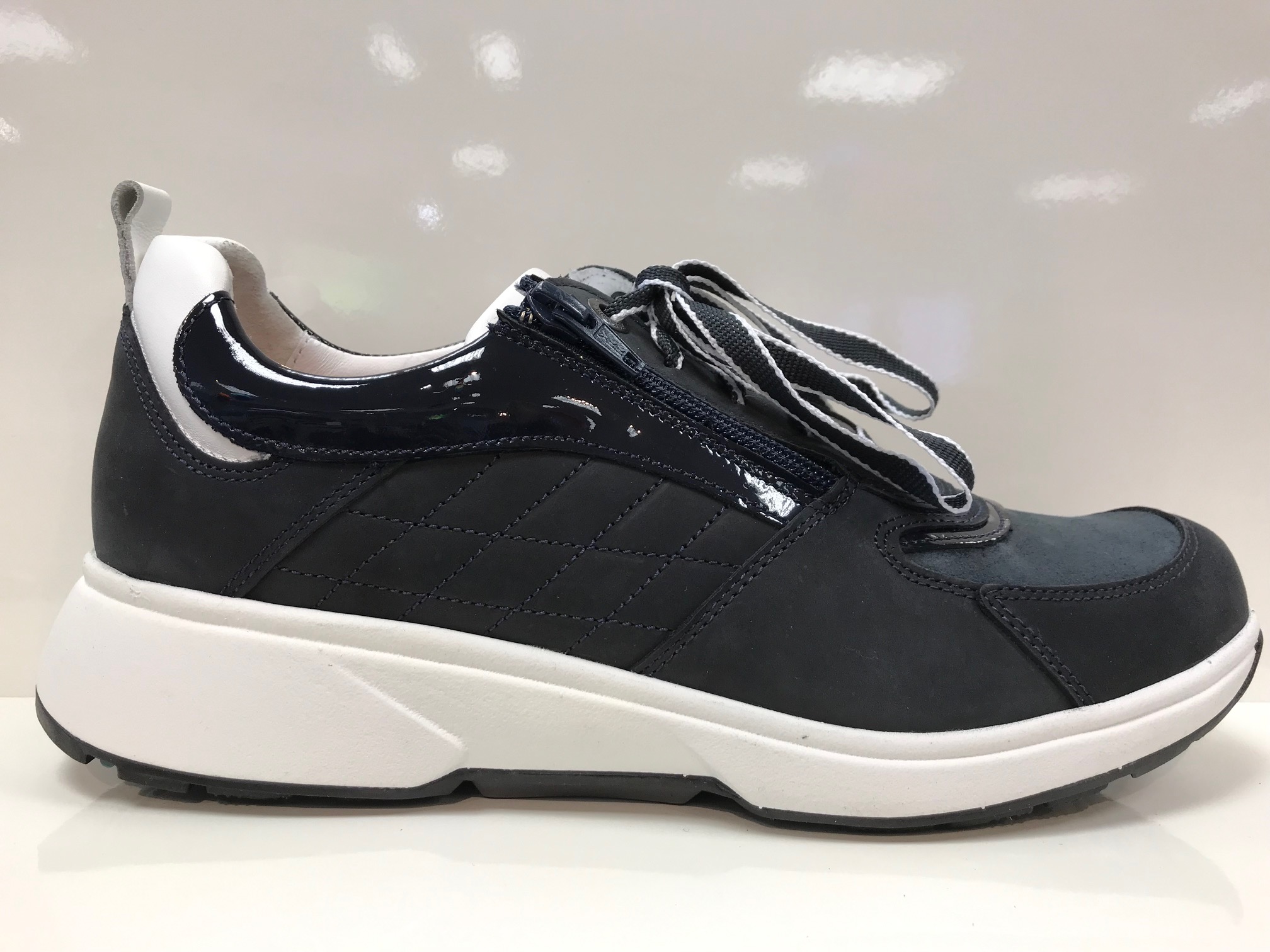 Damenhalbschuh/Herausnehmbares Fußbett/für Einlagen geeignet/Weite: H/Weiche Polster/Stretch-Leder im Vorfußbereich/Sohle mit der einzigartigen Xsensible Balance-Technologie garantieren höchsten Tragekomfort auf Schritt und Tritt/Schnürung sowie zusätzlicher Reißverschluss für schnelles An- und Ausziehen/Farbe: Navy (sehr dunkles Blau)