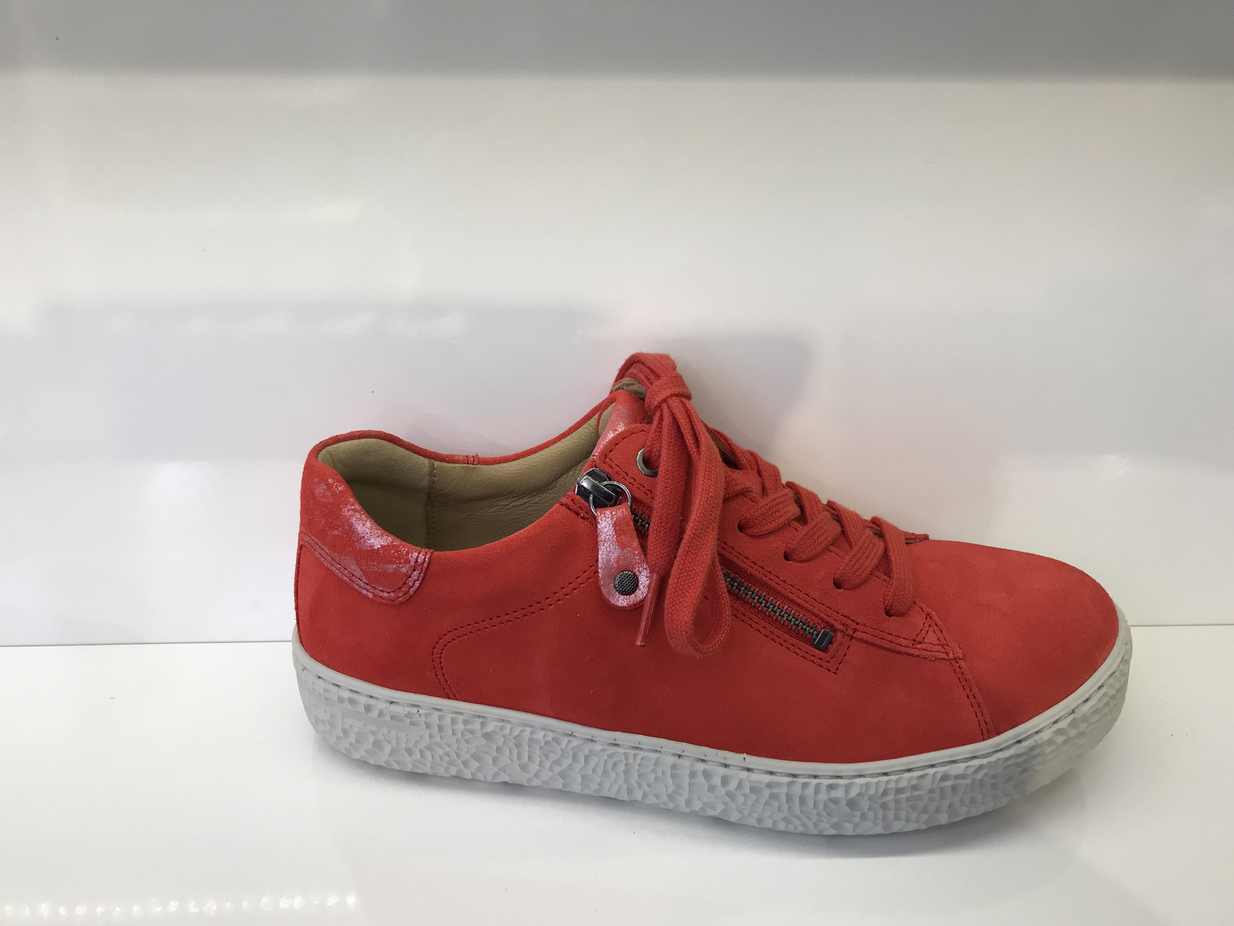 Damenhalbschuhe von Hartjes; Obermaterial: Hochwertiges Velourleder mit Prägung an der Ferse; Innenmaterial: hochwertiges Lederfutter; verstellbar durch Schnürung und einem seitlichem Reißverschluss; herausnehmbares Leichtkorkfußbett; Machart: gestrobelt; Weite H; Farbe: Flame/ Flame