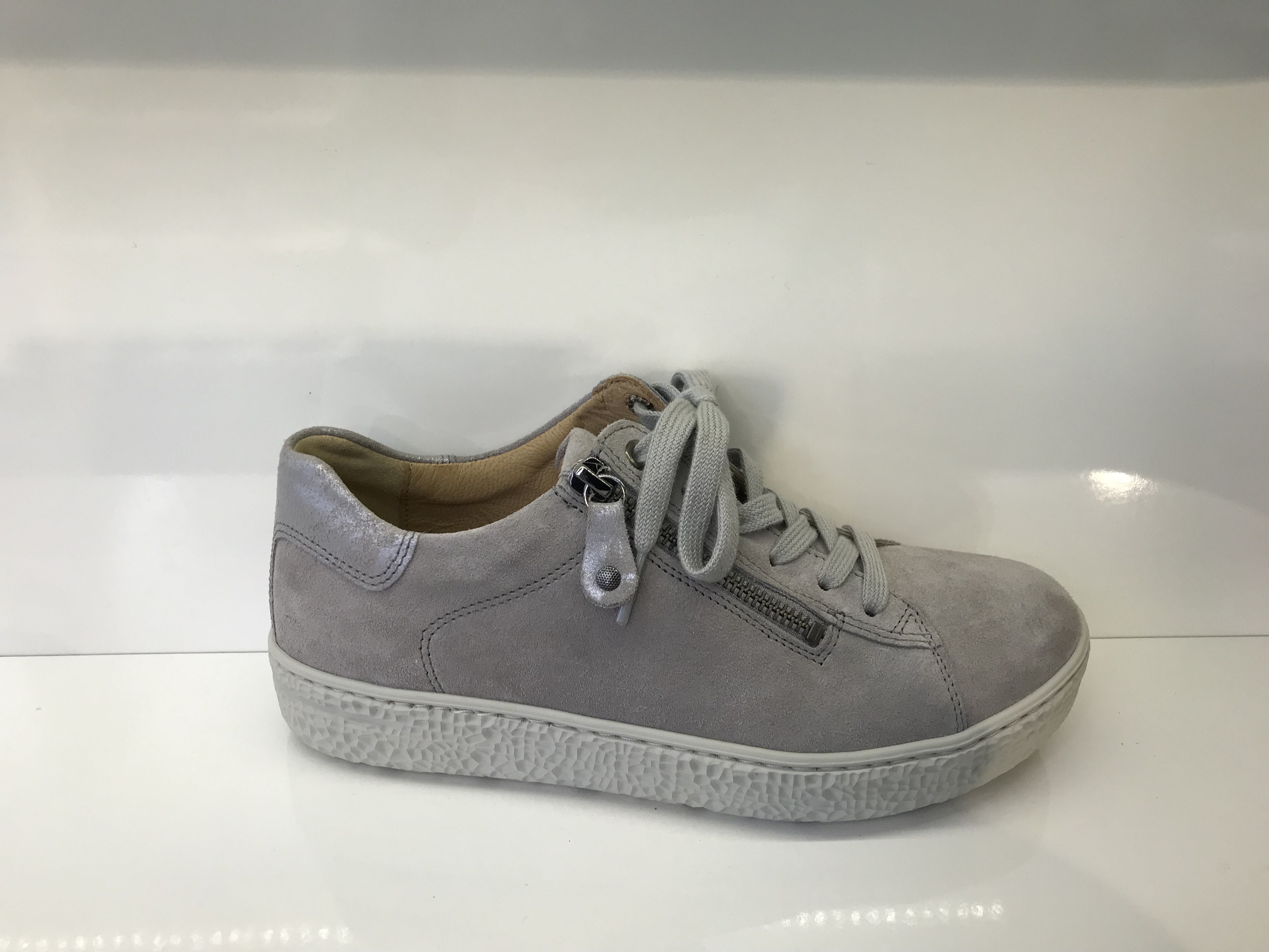 Damenhalbschuhe von Hartjes; Obermaterial: Hochwertiges Velourleder mit Prägung an der Ferse; Innenmaterial: hochwertiges Lederfutter; verstellbar durch Schnürung und einem seitlichem Reißverschluss; herausnehmbares Leichtkorkfußbett; Machart: gestrobelt; Weite H; Farbe: Kiesel-Kiesel