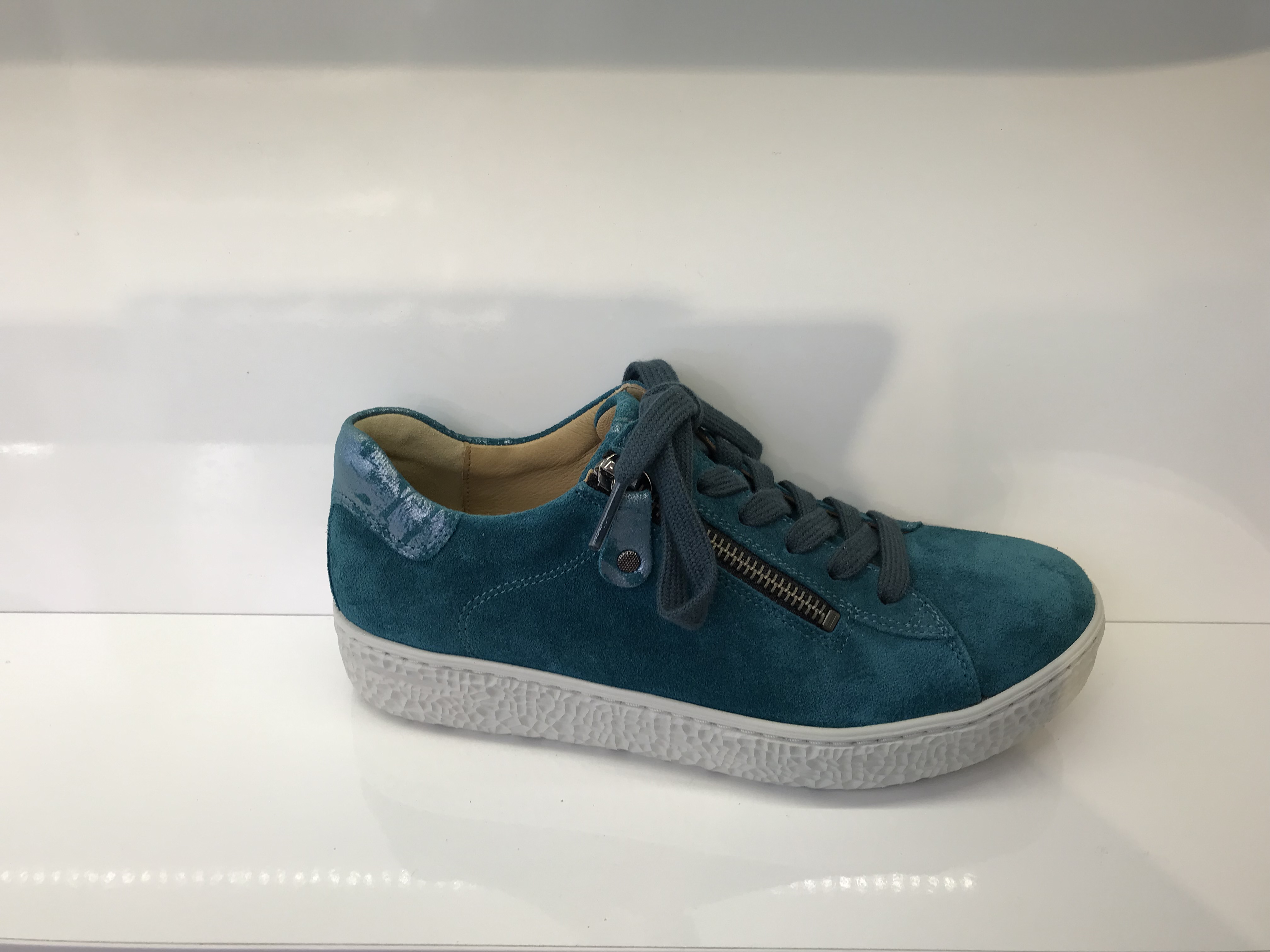 Damenhalbschuhe von Hartjes; Obermaterial: Hochwertiges Velourleder mit Prägung an der Ferse; Innenmaterial: hochwertiges Lederfutter; verstellbar durch Schnürung und einem seitlichem Reißverschluss; herausnehmbares Leichtkorkfußbett; Machart: gestrobelt; Weite H; Farbe: Petrol-Petrol