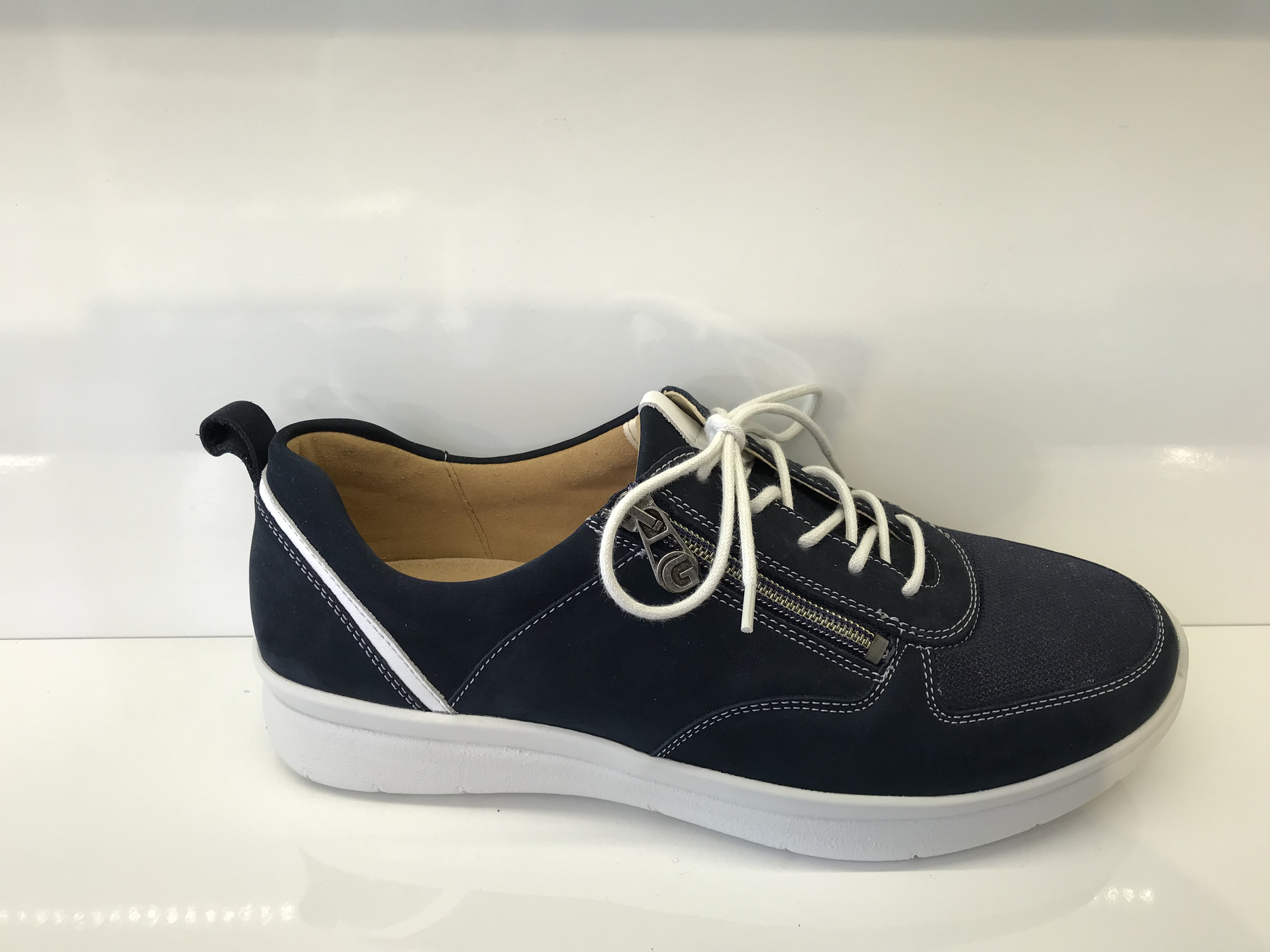Damenhalbschuhe von Ganter; Obermaterial: Softnubukleder und Strechmaterial; Innenmaterial: weiches Lederfutter (Sensitivfutter); herausnehmbares Leichtkorkfußbett; verstellbar durch Schnürung und einem zusätzlichen Reißverschluss; stoßdämpfende 4-Punkt-Sohle sorgt für ein natürliches Barfuß ähnliche Gehgefühl; weiße Sohle; geeignet für empfindliche Fußfüße (wenig Innennähte und viel Platz für die Zehen); für Diabetiker gut geeignet; Weite K; Farbe: Ocean