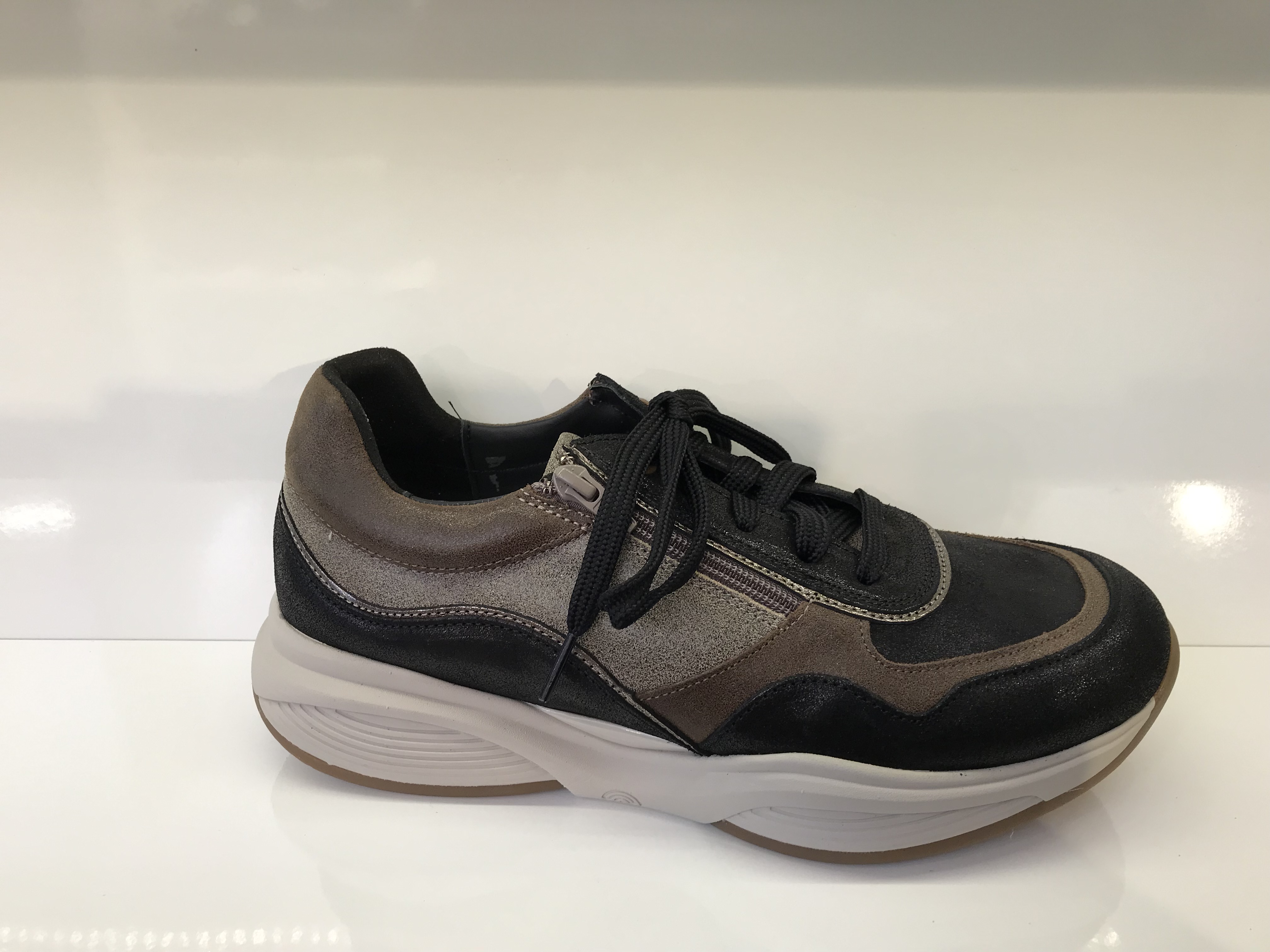 Damenhalbschuhe von Xsensible; Obermaterial: Hochwertiges Nubukleder mit patentiertem Strechleder; Innenmaterial: hochwertiges Lederfutter; verstellbar durch Schnürung und einen zusätzlichen Reißverschluss; herausnehmbares Fußbett; mit Balance-Technologie; Sehr gute Dämpfung; für empindliche Füße gut geeignet; Leicht; Weite H; Farbe: Black-Combi (Schwarz)