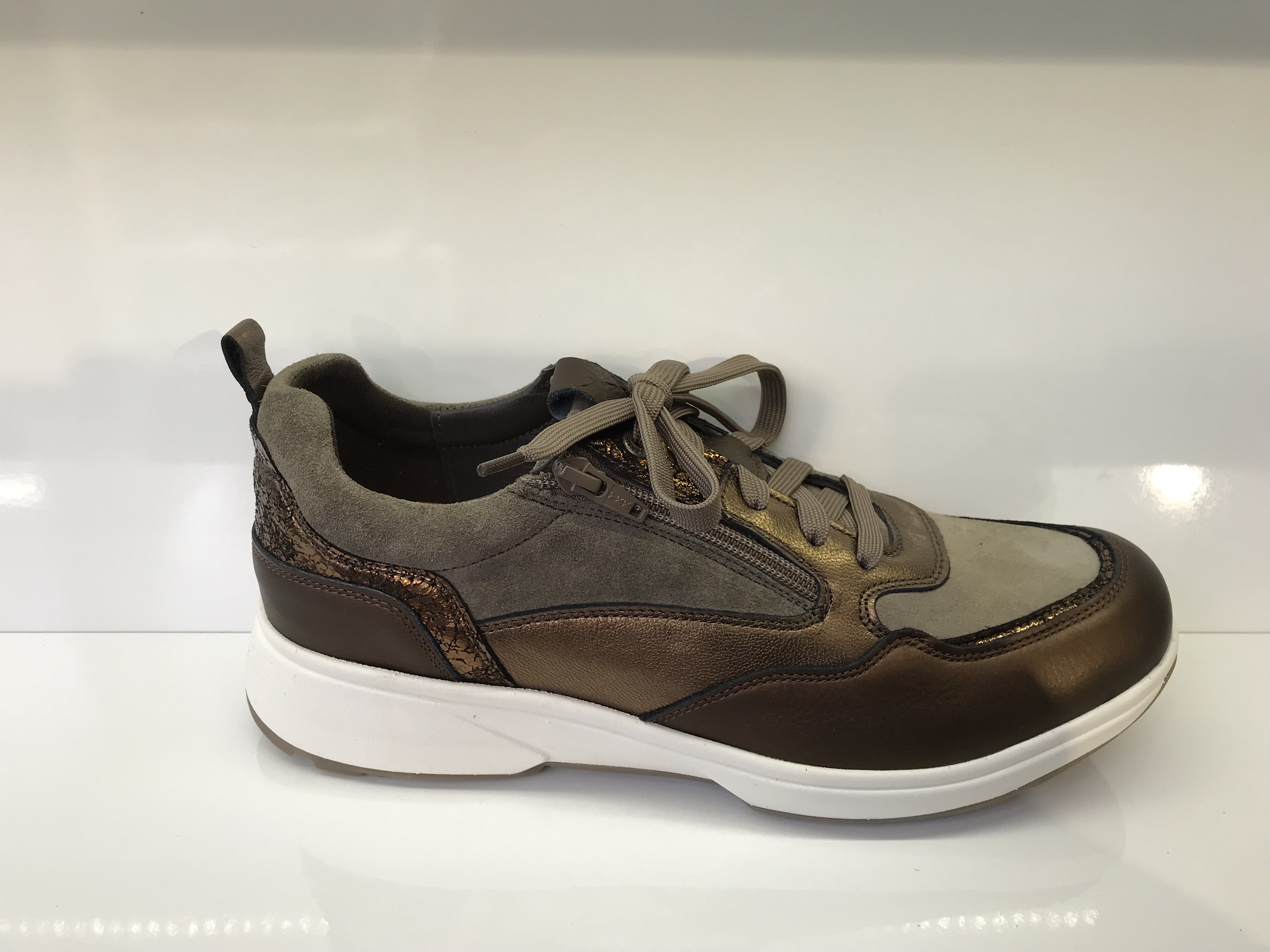 Damenhalbschuhe von Xsensible; Obermaterial: Hochwertiges Glattleder und Velourleder mit patentiertem Strechleder; Innenmaterial: hochwertiges Lederfutter; verstellbar durch Schnürung und einen zusätzlichen Reißverschluss; herausnehmbares Fußbett; mit Balance-Technologie; Sehr gute Dämpfung; Leicht; Weite G; Farbe: Bonze