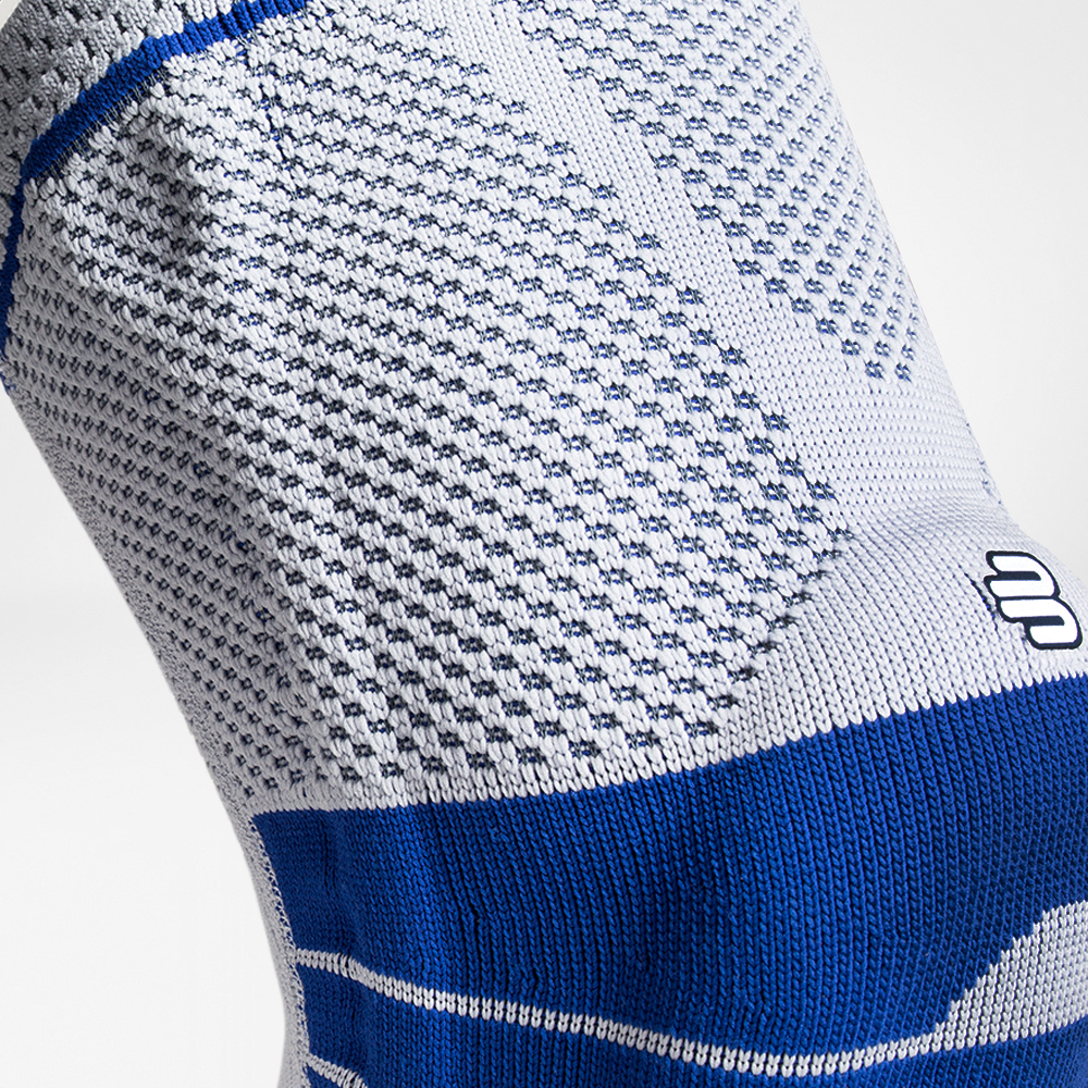 Material und Form der GenuTrain® Aktivbandage folgen einem ausgeklügeltem Funktionsdesign für optimale Wirksamkeit und hohen Tragekomfort. Ihr atmungsaktives, hautfreundliches Gestrick passt sich jeder Körperbewegung an, ohne einzuschnüren oder zu verrutschen. In der empfindlichen Beugezone der Kniekehle und im Randbereich der Bandage ist das Material sehr viel weicher und elastischer gehalten. Dadurch ist die GenuTrain besonders angenehm zu tragen. Seitliche Spiralstäbe halten die Bandage bei Bewegung in Form und integrierte Anziehhilfen ermöglichen ein leichtes Anlegen ohne viel Kraftaufwand.