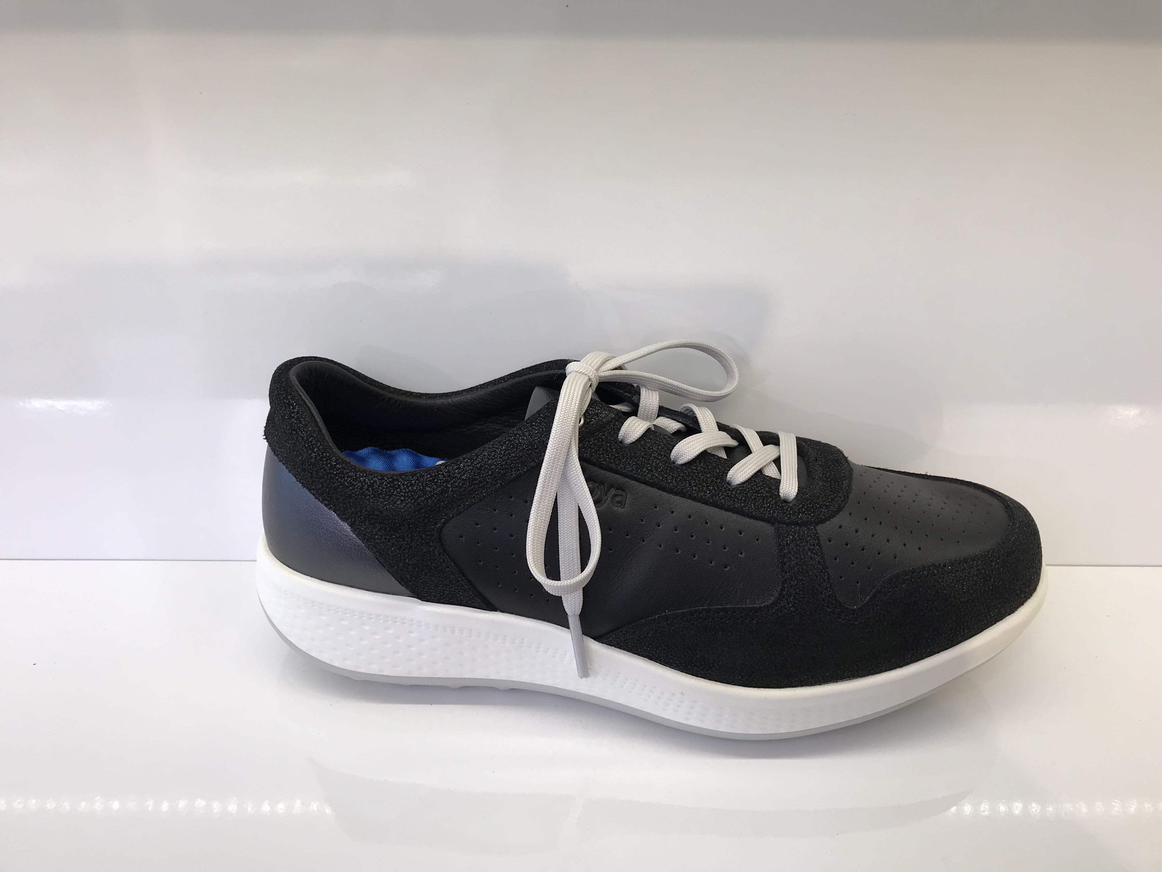 Damenhalbschuhe von Joya; Obermaterial: Premium-Glattleder und Velourleder; Innenmaterial: Leder- und Textilfutter; herausnehmbares Ortholite Nuvola-Fußbett (Die antibakterielle und atmungsaktive Innensohle kann bei 40°C in der Maschine gewaschen werden, behält nach dem Waschen alle seine Eigenschaften); verstellbar durch Schnürung; Sohle: Emotion (Sehr weich und stoßdämpfend); Unterstützt Rücken und Gelenke; Helle Sohle; stabiler Stand; Weite: H; Farbe: Schwarz