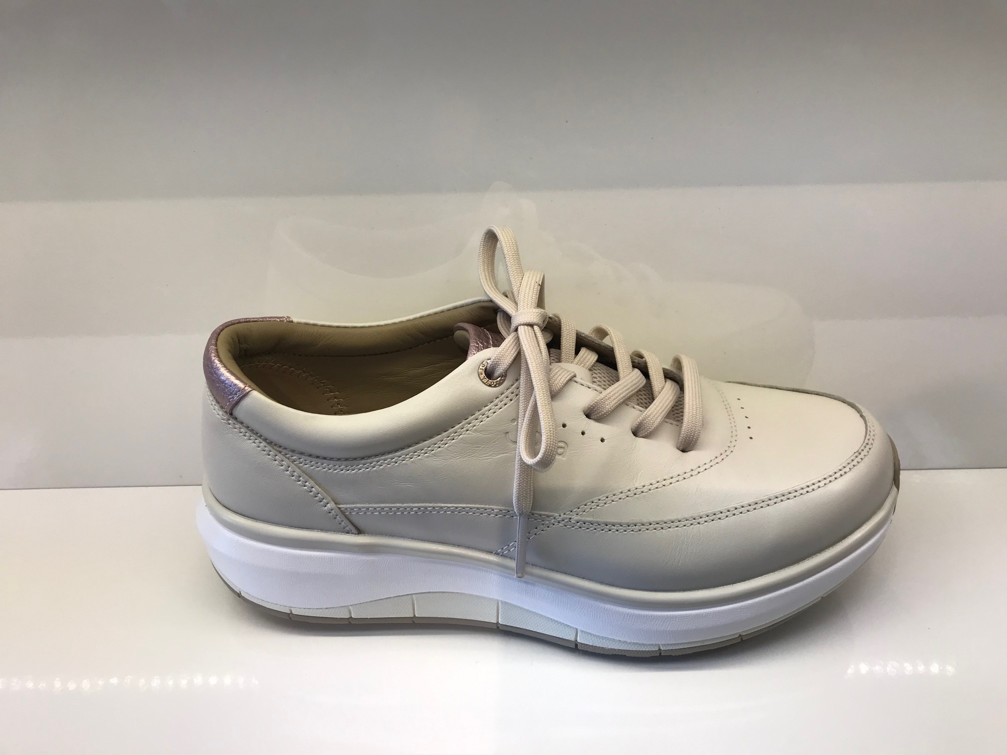 Damenaktivhalbschuhe von Joya; Obermaterial: Glattleder; Innenmaterial: Textilfutter; herausnehmbares Ortholite Support-Fußbett (Die antibakterielle und atmungsaktive Innensohle kann bei 40°C in der Maschine gewaschen werden, behält nach dem Waschen alle seine Eigenschaften); verstellbar durch Schnürung; Sohle: Emotion Wave (mit Mittelfußaktivator); Unterstützt Rücken und Gelenke; stabiler Stand; Weite: K extra weit; Farbe: Beige/ Weiß