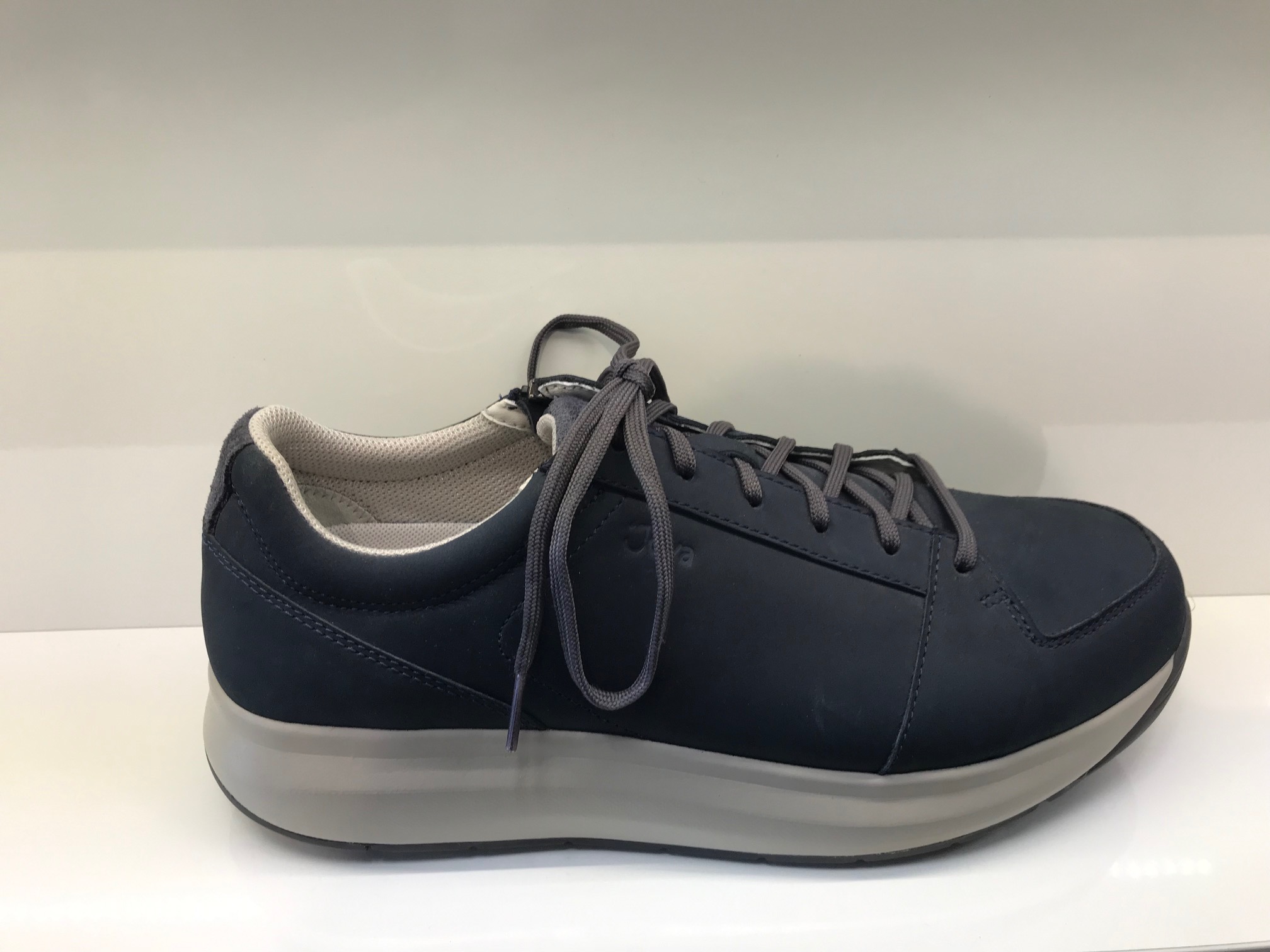 Herrenaktivschuhe von Joya; Obermaterial: Nubukleder; Innenmaterial: Textilfutter; herausnehmbares Ortholite Support-Fußbett; verstellbar durch Schnürung und zusätzlichen Reißverschluss; sehr stoßdämpfend; Sohlenform: Senso (weiche und federnde Sohlenmaterial entlastet Rücken und Füße); stabiler Stand; Weite H; Farbe: Dunkelblau