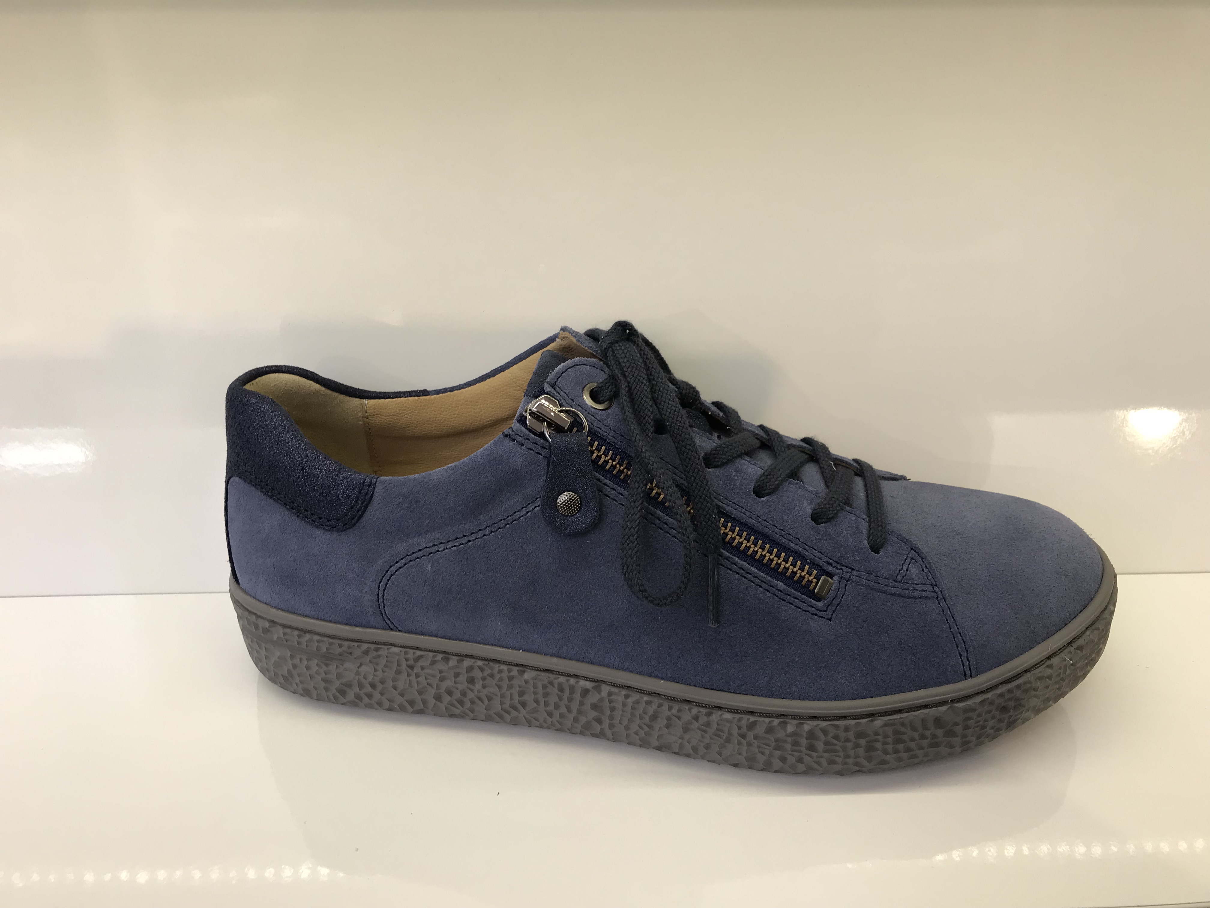 Damenhalbschuhe von Hartjes; Obermaterial: Hochwertiges Velourleder mit leichtem Glitzer an der Ferse; Innenmaterial: hochwertiges Lederfutter; verstellbar durch Schnürung und einem seitlichem Reißverschluss; herausnehmbares Leichtkorkfußbett; Machart: gestrobelt; Weite H; Farbe: Stahlblau