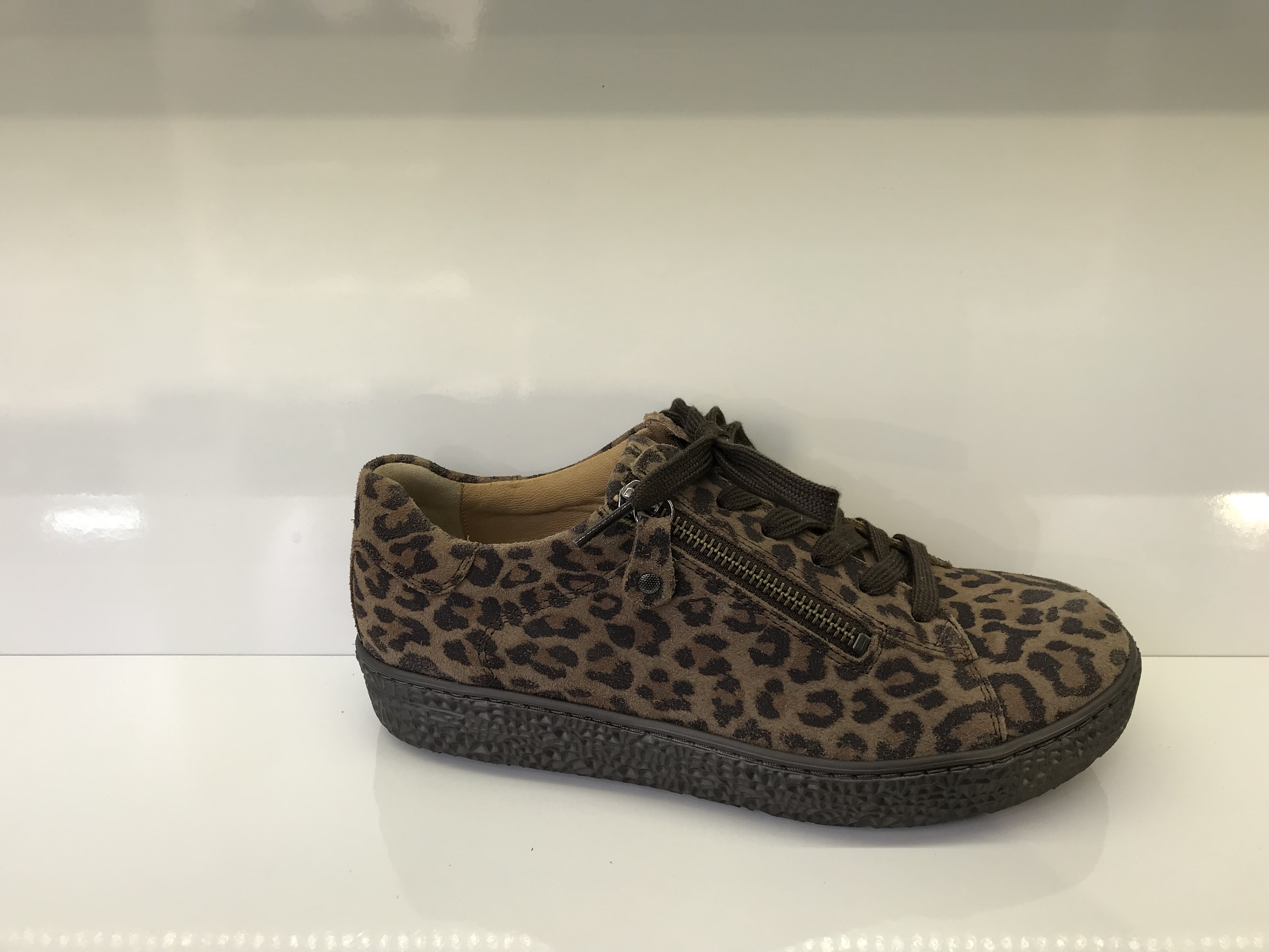 Damenhalbschuhe von Hartjes; Obermaterial: Hochwertiges Velourleder mit Prägung; Innenmaterial: hochwertiges Lederfutter; verstellbar durch Schnürung und einem seitlichem Reißverschluss; herausnehmbares Leichtkorkfußbett; Machart: gestrobelt; Weite H; Farbe: Leo (Braun)