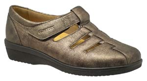 Obermaterial: Glattleder; Innenmaterial: Sensitivfutter (Lederfutter); herausnehmbares Fußbett; verstellbar durch ein Klettverschluss; Weite I; Dunkle dämpfende PU-Sohle; Farbe: Bronce-Metall