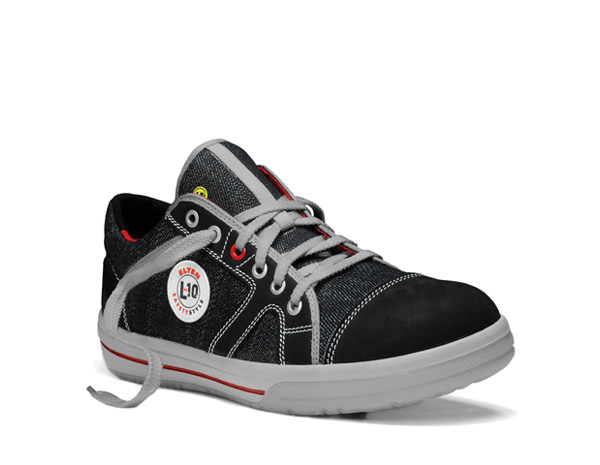 Obermaterial: Hydrophobiertes Textilmaterial in Jeans-Optik / Hydrophobiertes Nubukleder; Innenmaterial: Textilfutter Bioactive; Gepolsterte Lasche; Ganzflächige Einlegesohle L10 ESD; ESD-fähige Softvlies; Brandsohle; TPU/PU Sohle L10; Nach EN ISO 20345 S2, Form A; Extra: Dunkelgraue Senkel mit dabei