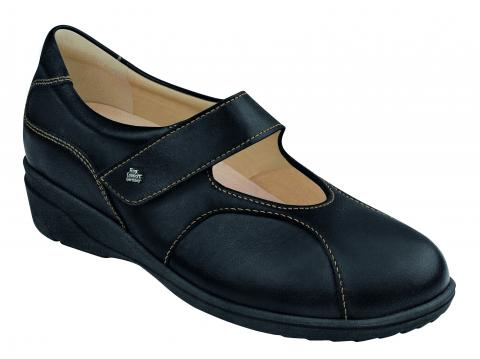 Obermaterial: Glattleder; Innenmaterial: Leder; Mit herausnehmbarem anatomisch geformten Fußbett; Verstellbar durch einen Klettverschluss; Extra weiches Leder im Vorfußbereich, besonders geeignet für breite und sensible Füße; Weite L (Breit); Farbe Schwarz